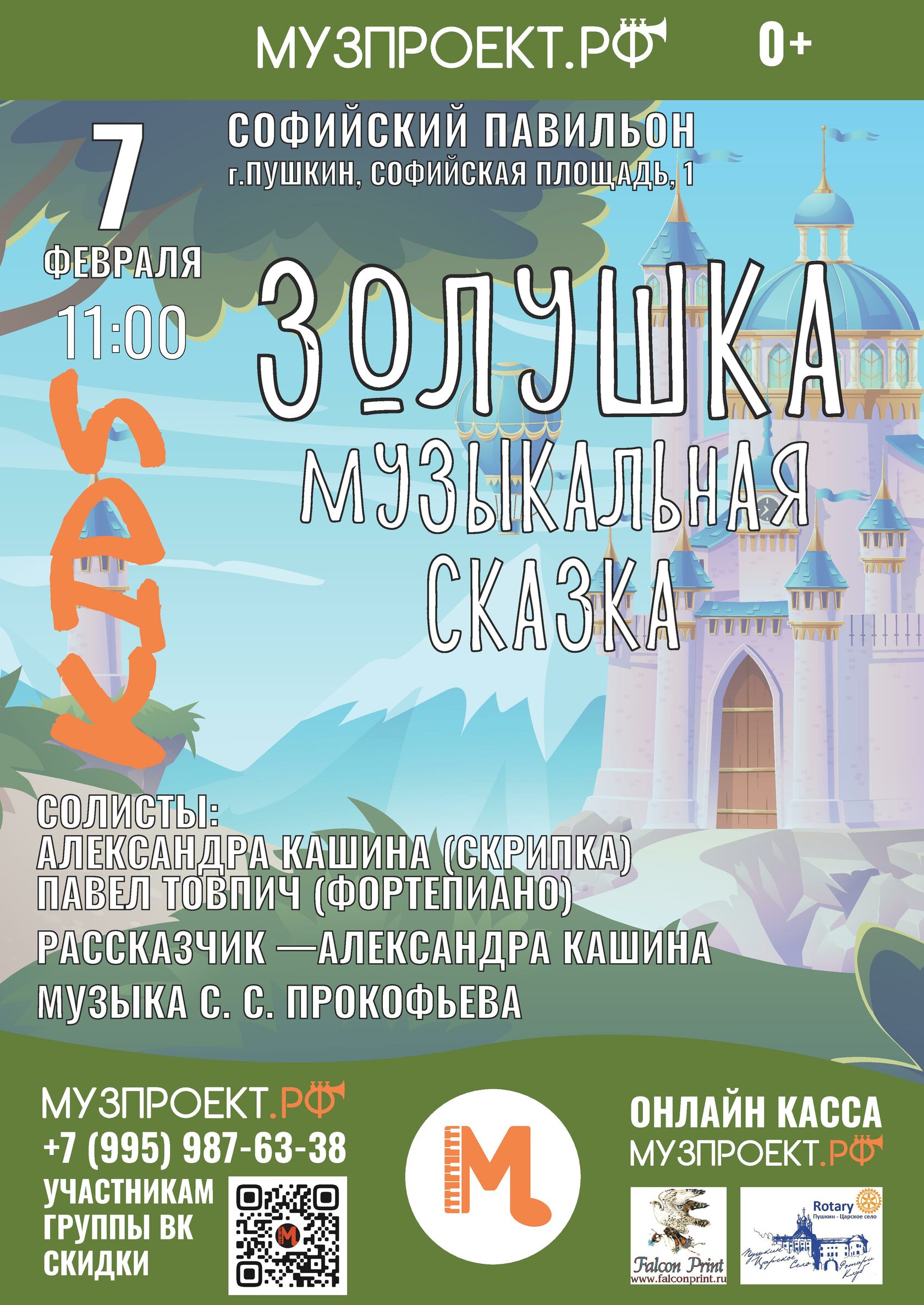 7 февраля в 11:00 в концертном зале Софийского павильона - "Золушка" Сергея Прокофьева в интерпретации для скрипки, фортепиано и рассказчика.