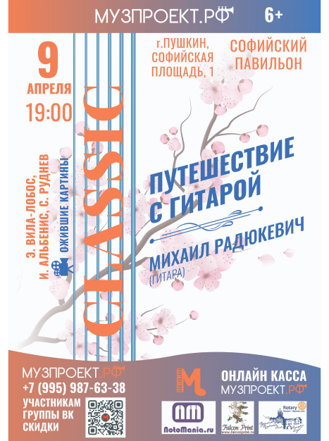 В дополнение к прекрасной музыке, Михаил расскажет об истории появления гитары и великих музыкантах, творчество которых оказало влияние на развитие гитарного искусства.